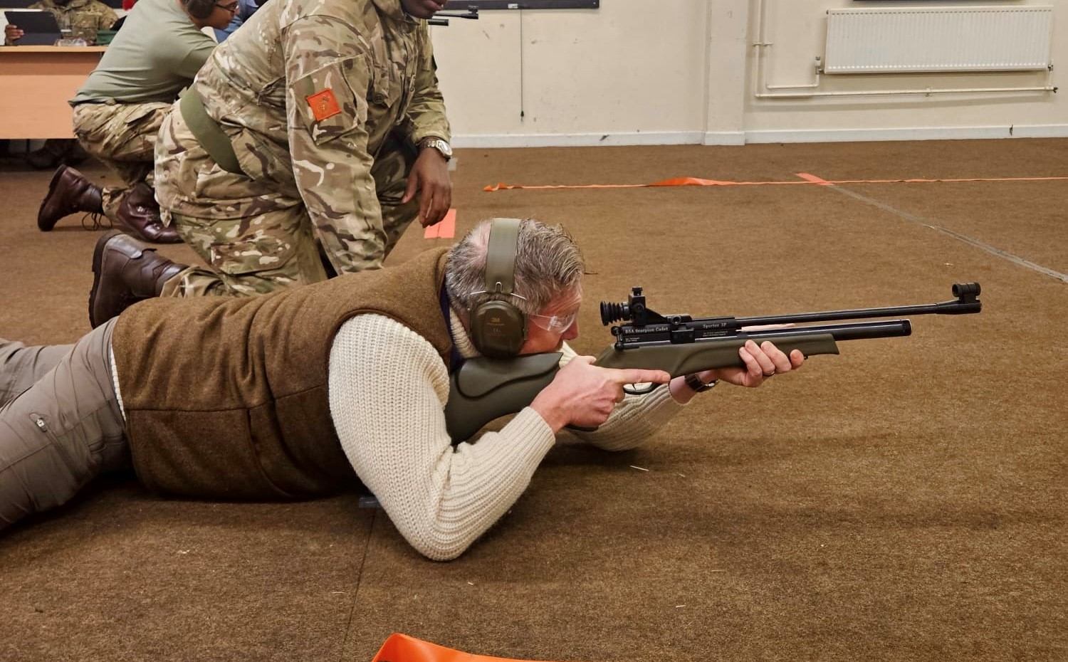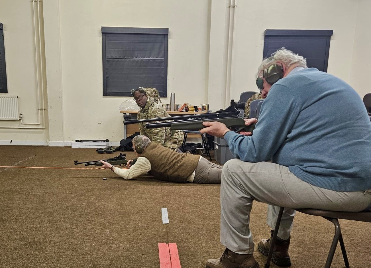 As a Company we are proud of our Military affiliations, which include the 13 Company SW London Army Cadets. Today (29 November 2025) Master Matt Molloy and Senior Warden Peter King had the pleasure of attending Christmas Camp at St Martins Plain Military Camp, where, as well as presenting the Cadet Peacemaker of the Year Award [see here] to Cadet Sgt Maj Kitty Woosey (Well Done!), were also given the opportunity to participate in an Air Rifle session. Many thanks to Major Joe Drohan OC and his team for the invitation, hospitality and the opportunity to see the Cadets in action as part of the competition for the Detachment of the Year Award – best of luck for the final day tomorrow! [Update: The winning detachment was 136 Detachment (Wimbledon), though it was a close-run thing! ]